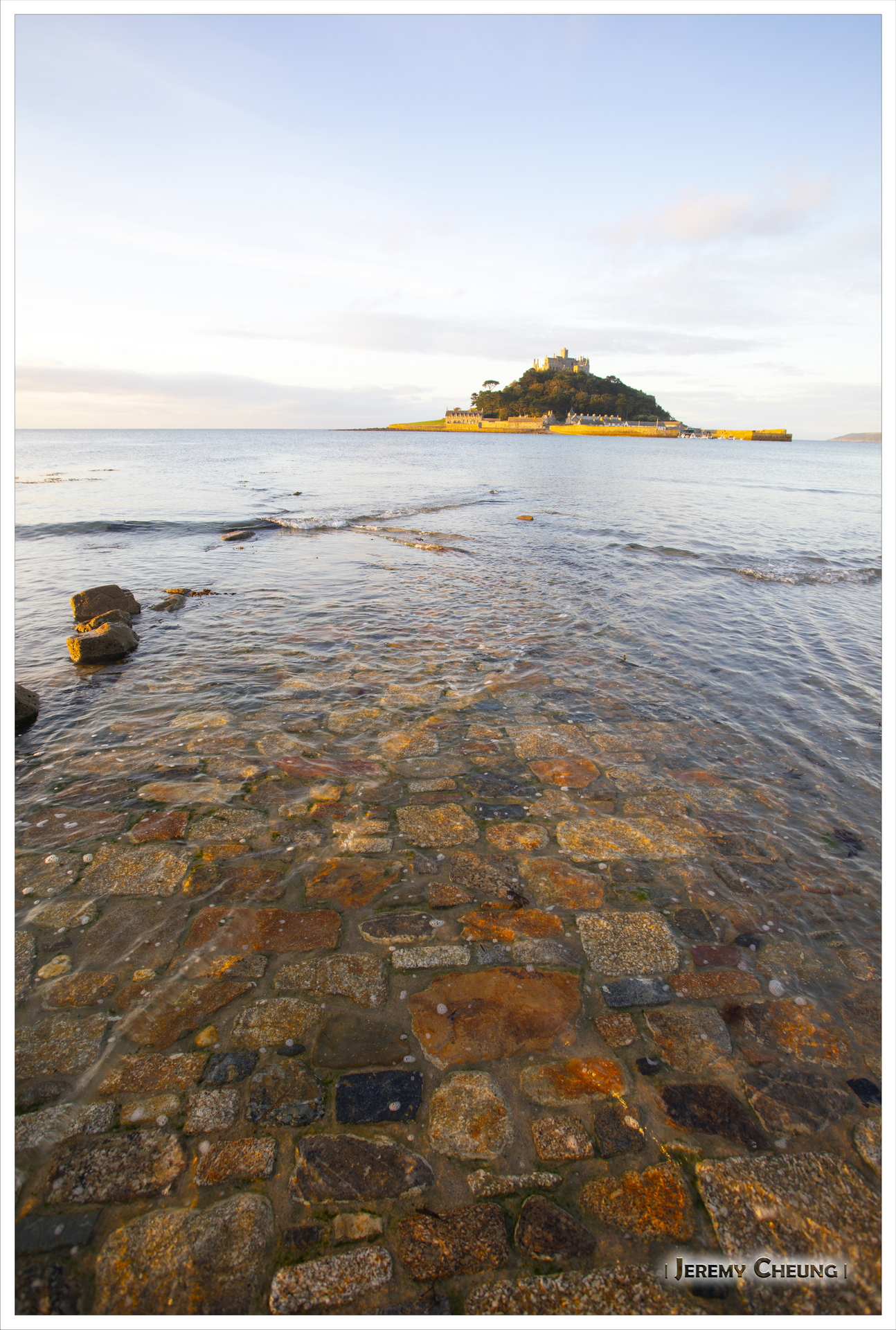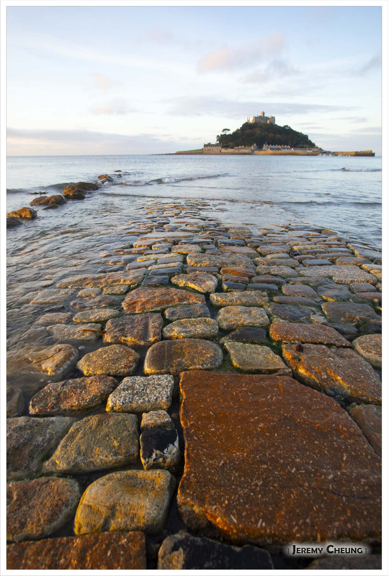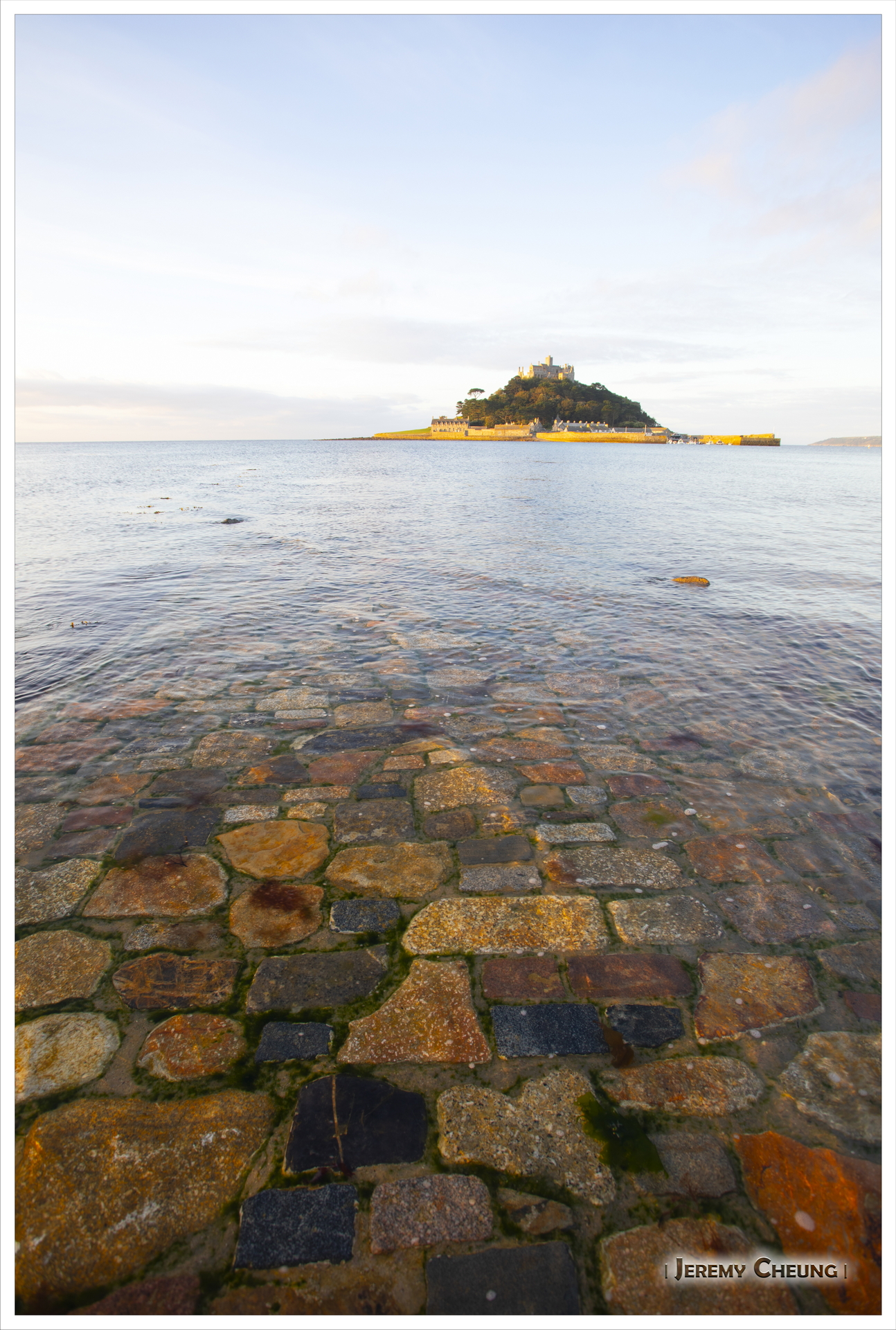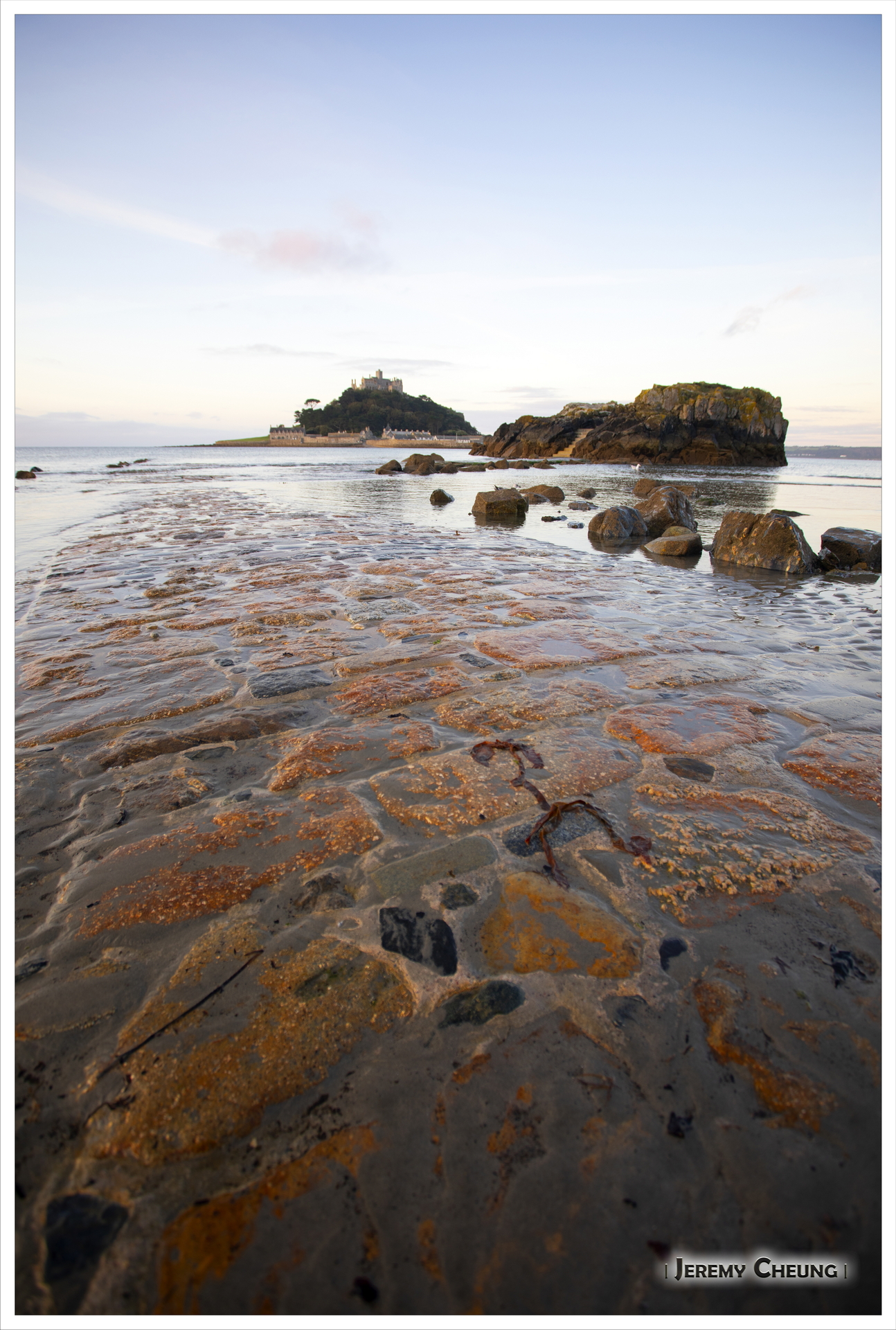 第二天一早來到沙灘上看日出, 由於沙灘方向的關係, 不太可能拍到 St. Michael's Mount 和咸蛋黃一起的照片. 不過由於潮水在這時慢慢退卻的關係, 讓我可以捕捉到水退而海中道路顯露出來的一刻, 十分特別呢. 回去吃早餐之後, 我們再出發正式'登島', 參觀 St. Michael's Mount 上的小城堡和花園, 還可以看到連接道路上人頭湧湧的景像, 很幸運呢.