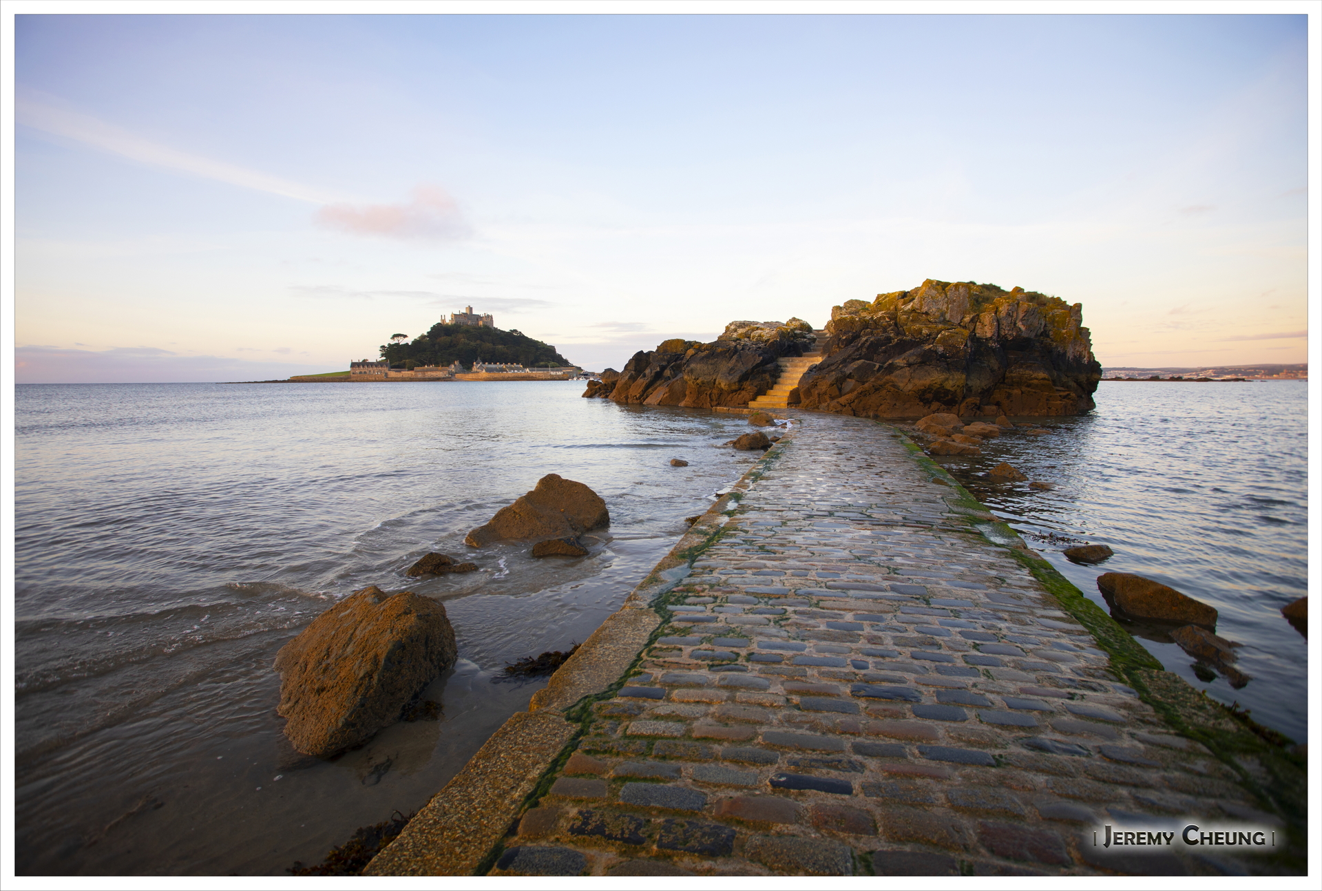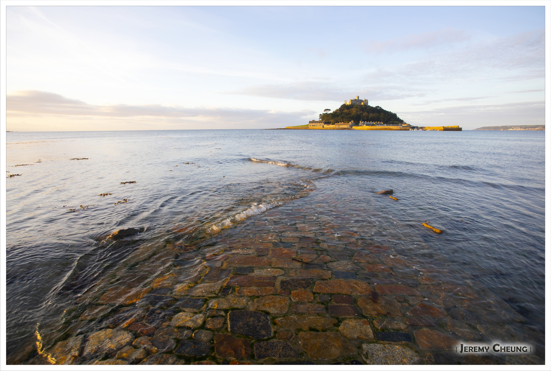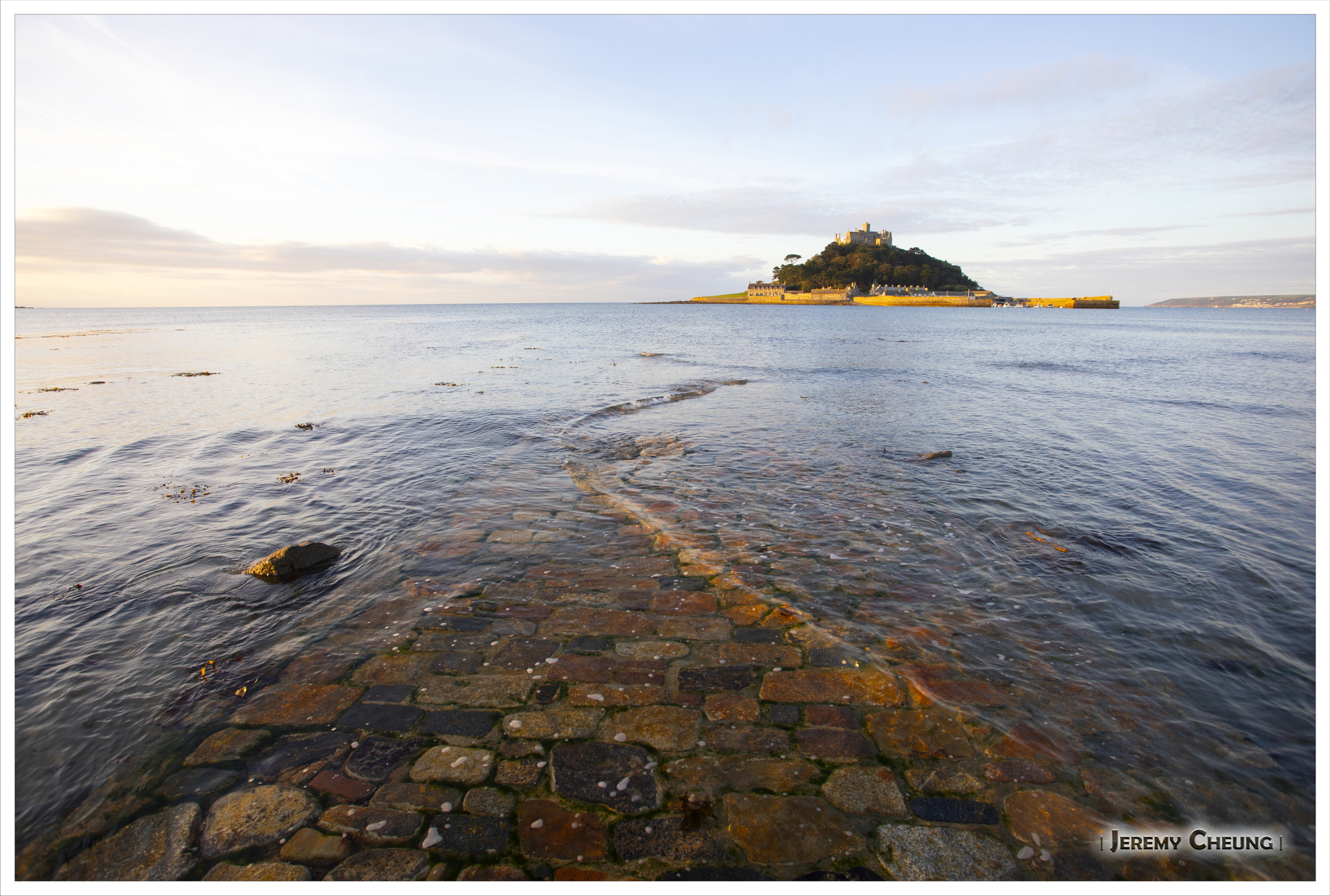 第二天一早來到沙灘上看日出, 由於沙灘方向的關係, 不太可能拍到 St. Michael's Mount 和咸蛋黃一起的照片. 不過由於潮水在這時慢慢退卻的關係, 讓我可以捕捉到水退而海中道路顯露出來的一刻, 十分特別呢. 回去吃早餐之後, 我們再出發正式'登島', 參觀 St. Michael's Mount 上的小城堡和花園, 還可以看到連接道路上人頭湧湧的景像, 很幸運呢.