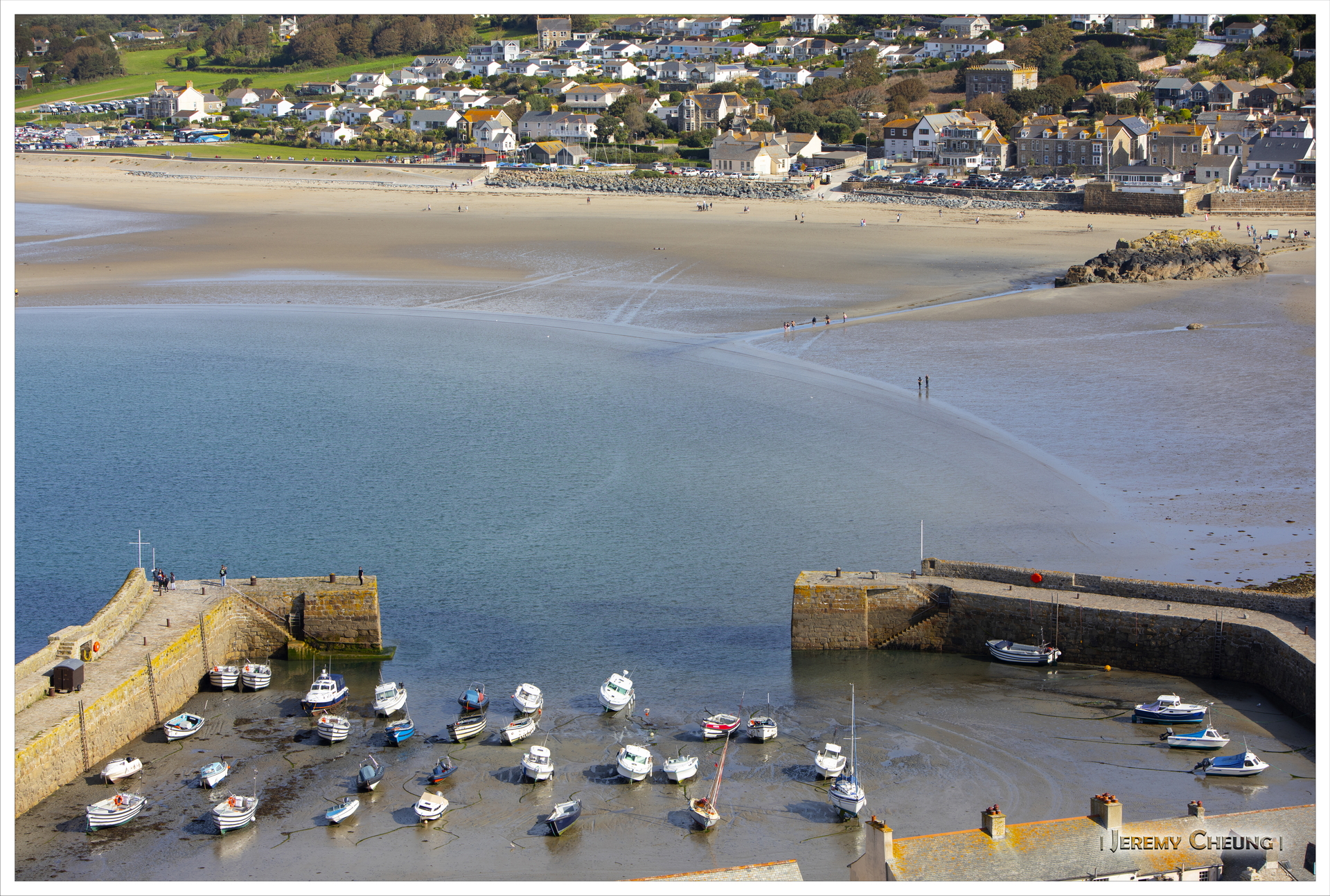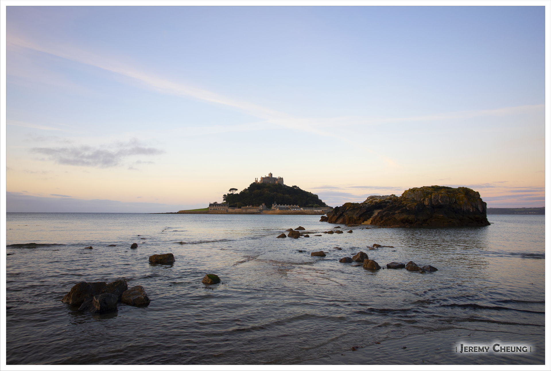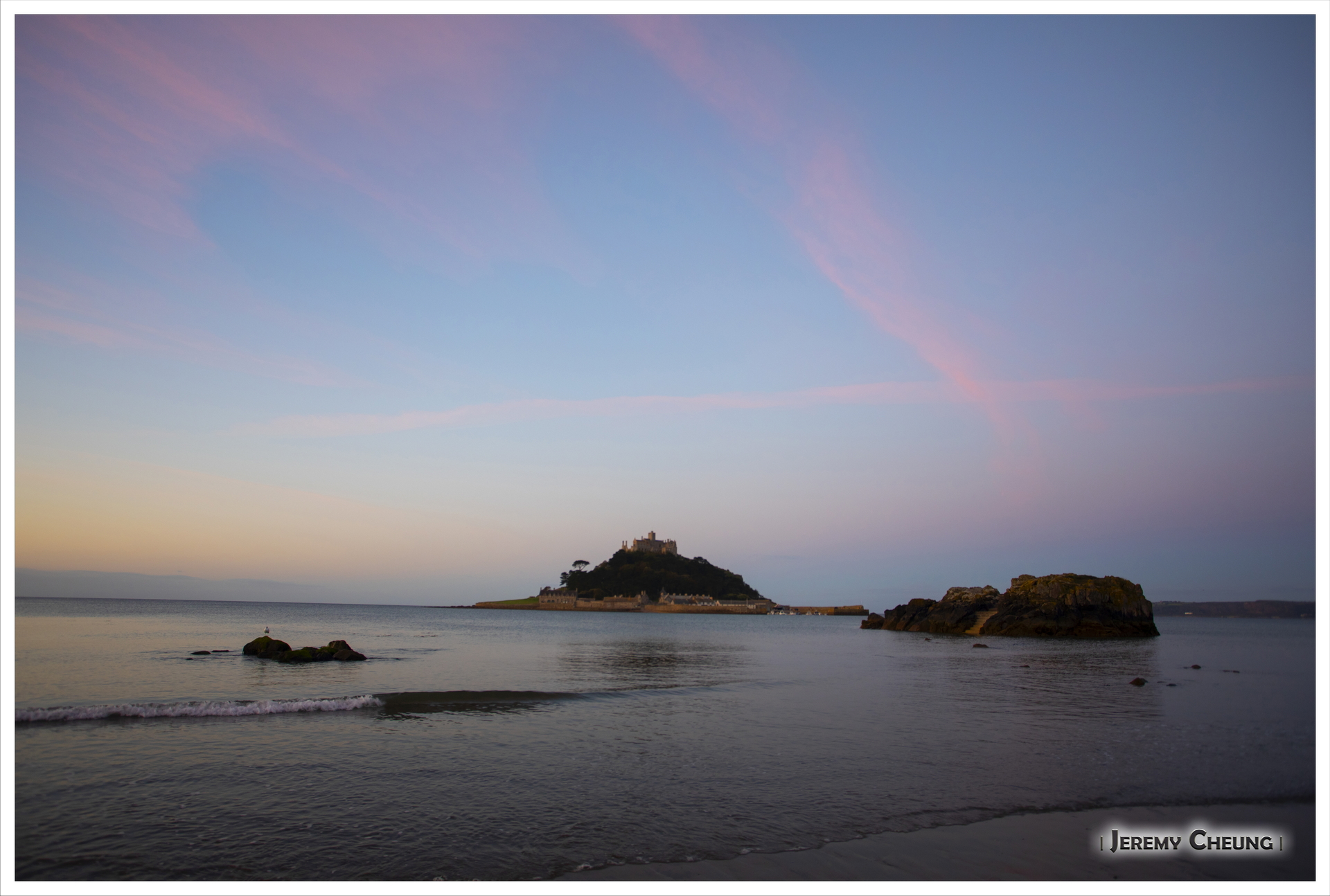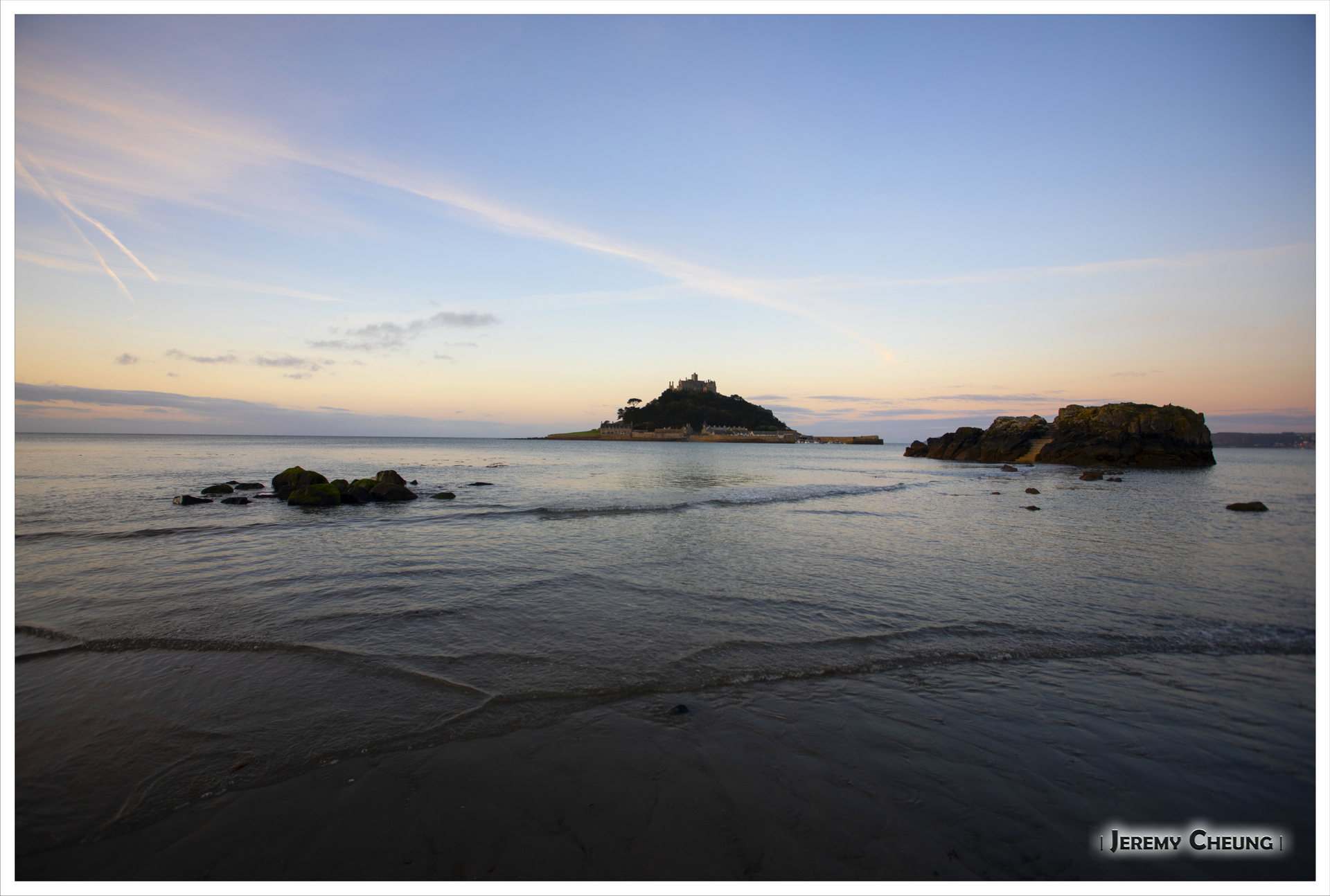 第二天一早來到沙灘上看日出, 由於沙灘方向的關係, 不太可能拍到 St. Michael's Mount 和咸蛋黃一起的照片. 不過由於潮水在這時慢慢退卻的關係, 讓我可以捕捉到水退而海中道路顯露出來的一刻, 十分特別呢. 回去吃早餐之後, 我們再出發正式'登島', 參觀 St. Michael's Mount 上的小城堡和花園, 還可以看到連接道路上人頭湧湧的景像, 很幸運呢.