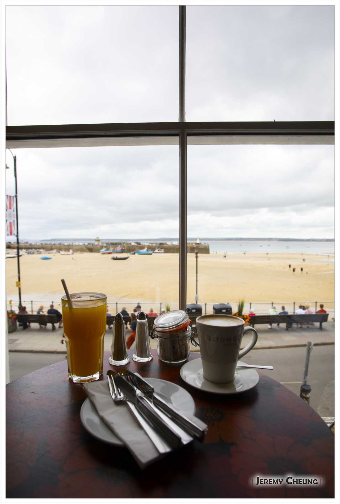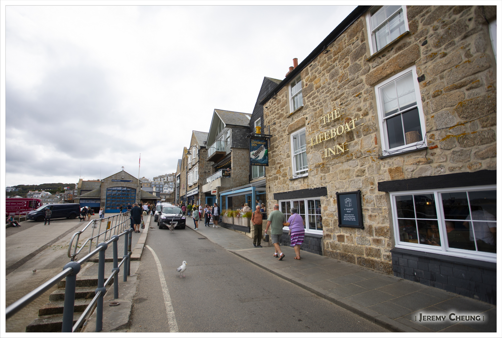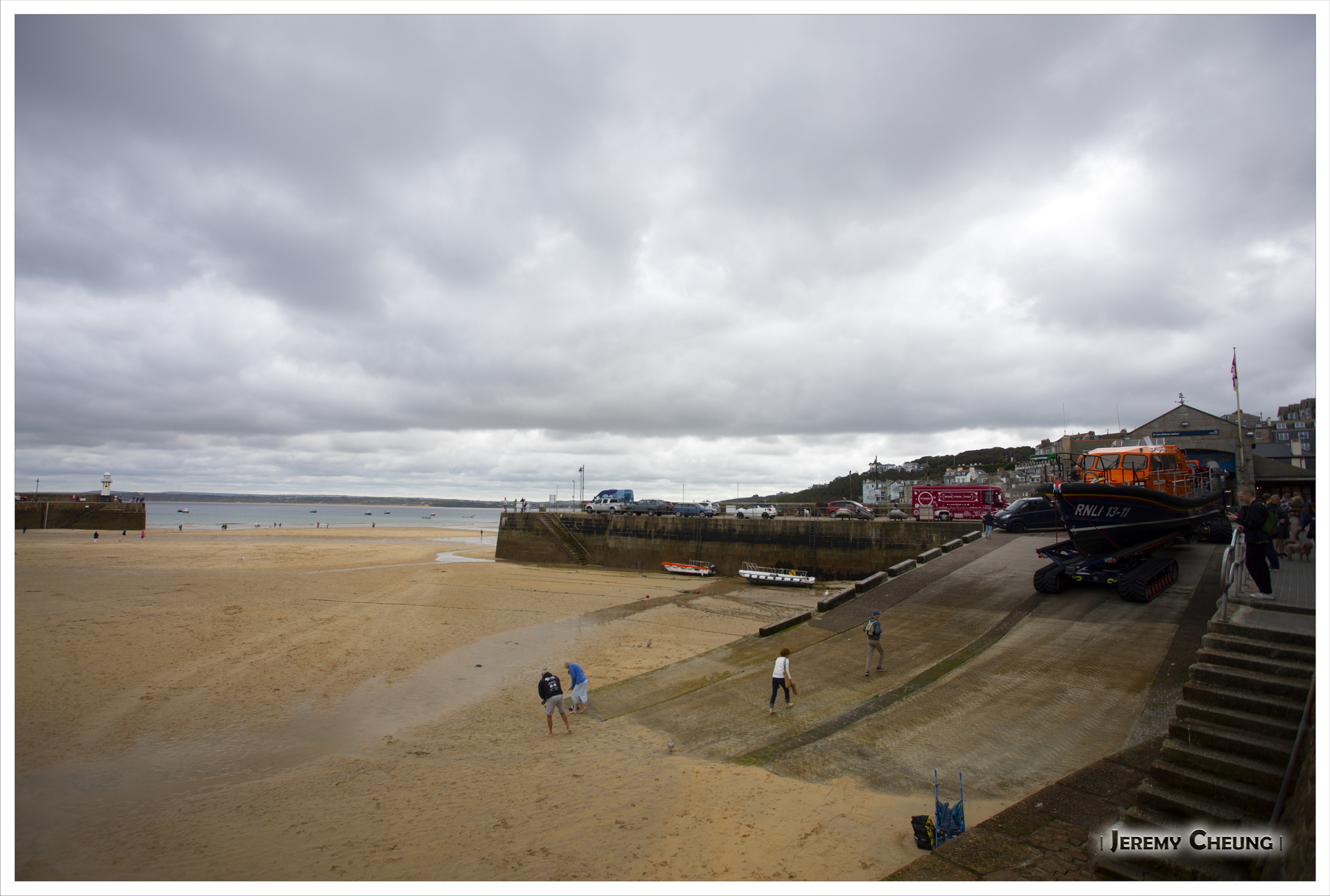 昨天長時間活動之後, 再加上今天預期會陰天, 所以我們等到睡飽才出發. 我們來到著名的 St. Ives, 首先停車位有點難找, 我們要泊到山上欖球場, 再步行下山. 其次可能天氣一般, 再加上有很多人, 有很擠泊的感覺, 不太享受. 最後, 我們沿著沙灘走, 找了一間有向海位置的餐廳慢慢享受午餐. 吃飽後再四處逛逛, 看看天陰下有點失色的 St. Ives.