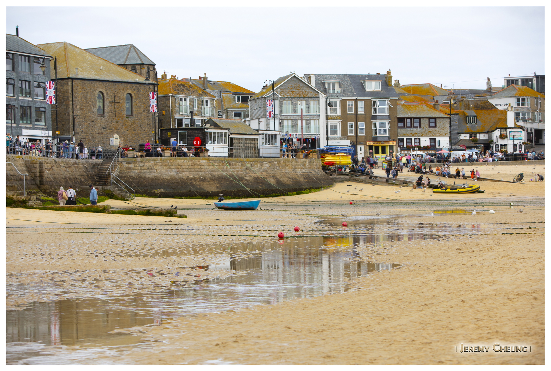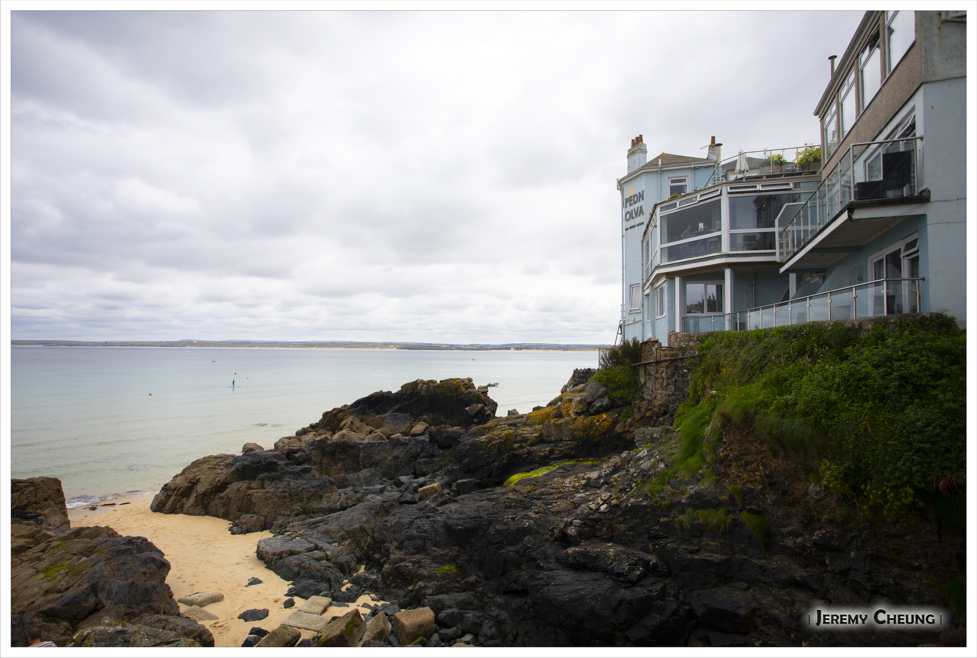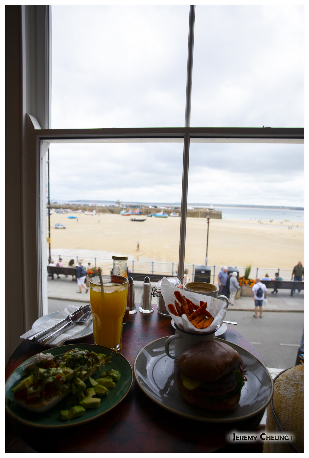 昨天長時間活動之後, 再加上今天預期會陰天, 所以我們等到睡飽才出發. 我們來到著名的 St. Ives, 首先停車位有點難找, 我們要泊到山上欖球場, 再步行下山. 其次可能天氣一般, 再加上有很多人, 有很擠泊的感覺, 不太享受. 最後, 我們沿著沙灘走, 找了一間有向海位置的餐廳慢慢享受午餐. 吃飽後再四處逛逛, 看看天陰下有點失色的 St. Ives.