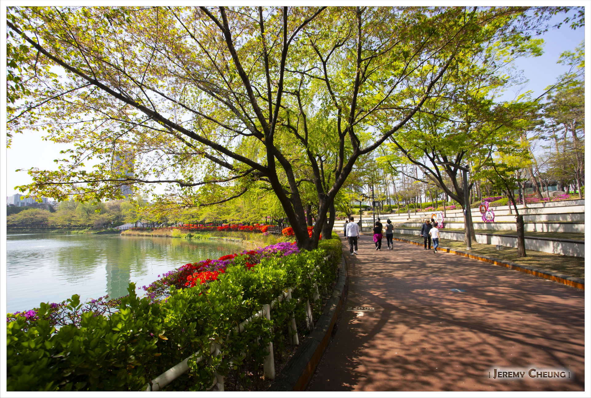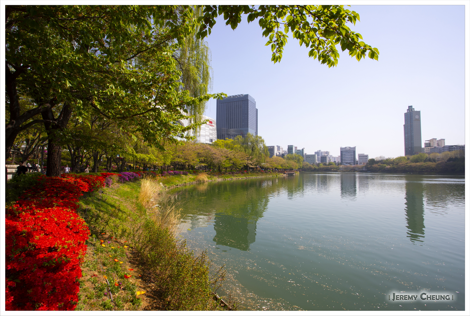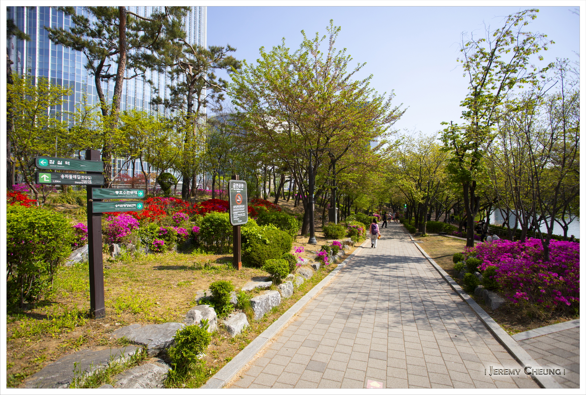 來到首爾的第二天賞試一下找尋櫻花的下落, 原本四月中是一個不錯的賞花時間, 但因為今年十分之熱, 櫻花開花早了很多, 基本上己經看不到了. 我們首先到了出名的 石村湖公園 (석촌호수공원) 看看, 不過一如所料, 己經找不到櫻花的影踪. 之後到了冷門一點的 大母山站 (대모산역) 附近看看, 這裡有一條河, 可以悠閒的沿著河邊散步, 而幸運地看到零星的櫻花, 總算叫做看到了今年最後的花.