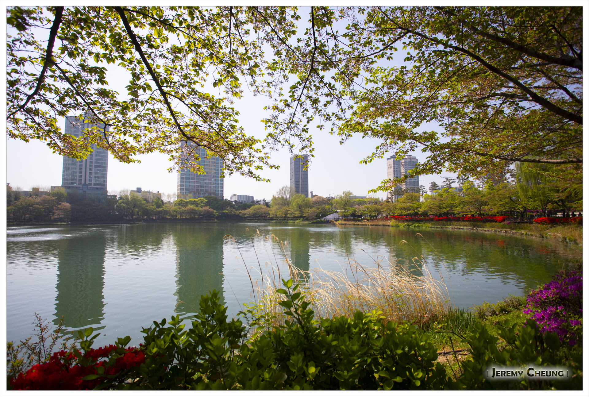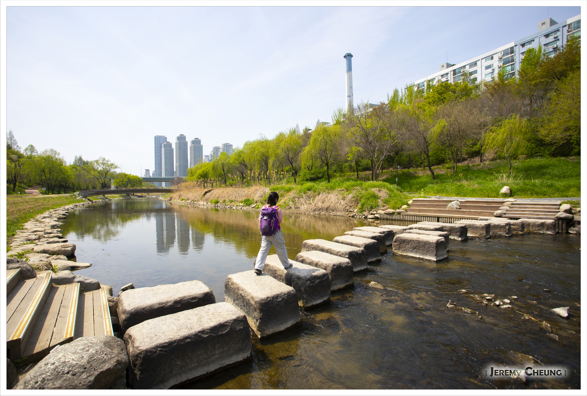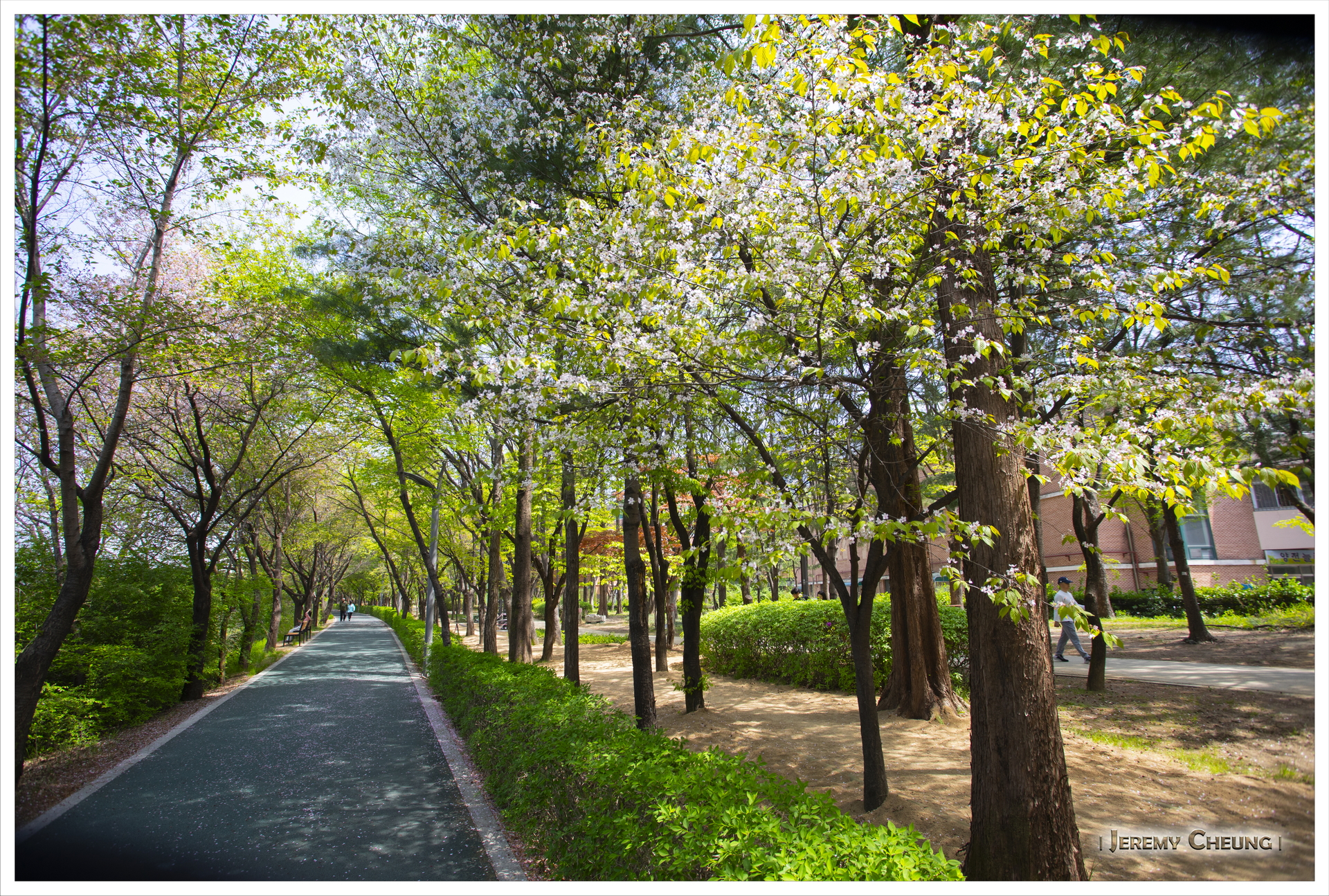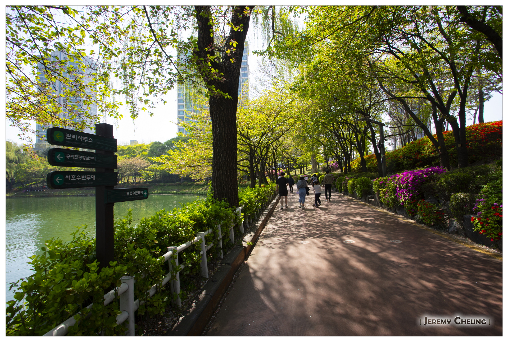 來到首爾的第二天賞試一下找尋櫻花的下落, 原本四月中是一個不錯的賞花時間, 但因為今年十分之熱, 櫻花開花早了很多, 基本上己經看不到了. 我們首先到了出名的 石村湖公園 (석촌호수공원) 看看, 不過一如所料, 己經找不到櫻花的影踪. 之後到了冷門一點的 大母山站 (대모산역) 附近看看, 這裡有一條河, 可以悠閒的沿著河邊散步, 而幸運地看到零星的櫻花, 總算叫做看到了今年最後的花.