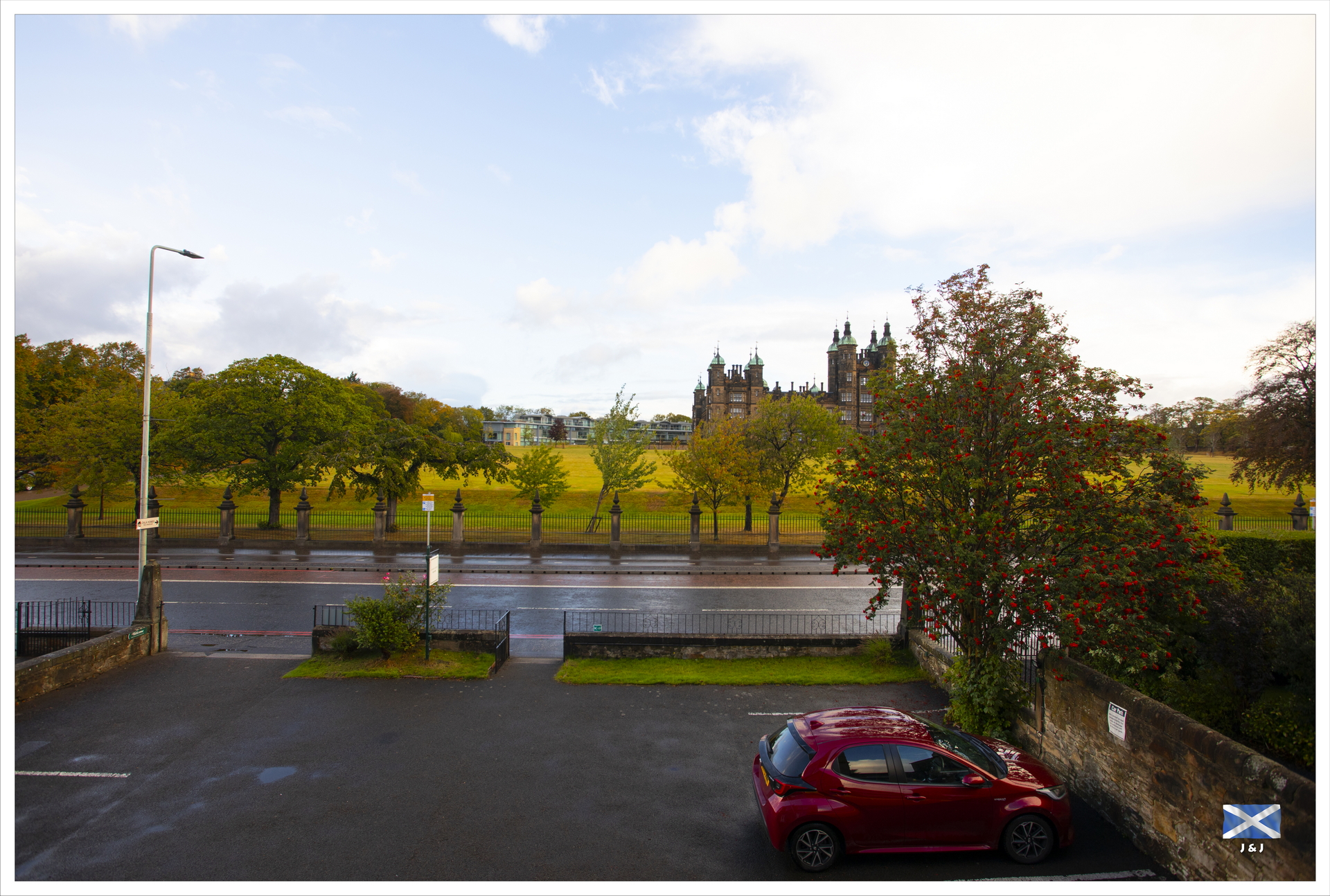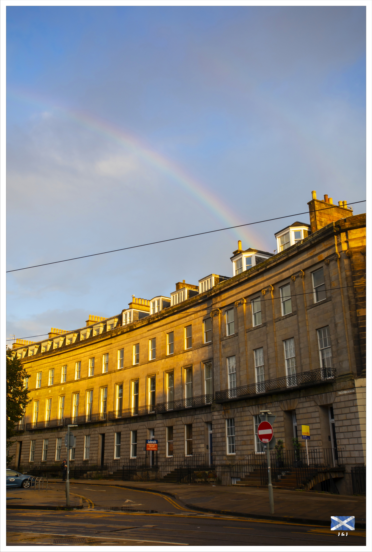 由屋企到 Edinburgh 淨車程大約要八個多小時, 我們八點前出門口, 途中停了多個 Services, 到達時己經是下午五時多. 在 Edinburgh 加滿油, 吃個熱狗後便到酒店 Check-in. 隨後再在酒店附近逛一逛, 和彩虹偶遇之後, 逛了一會兒便回去休息了.