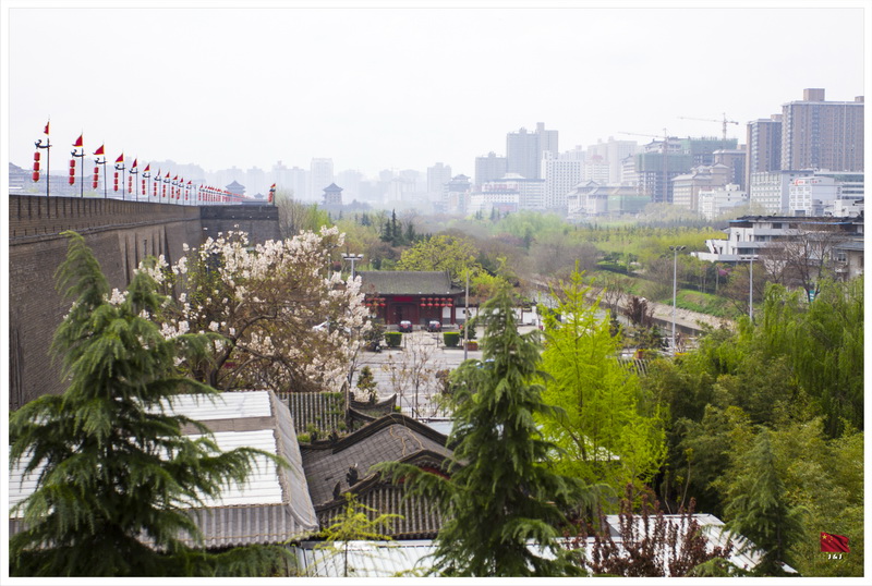 離開書院門後到了鐘樓, 在鐘樓上可以看到整個西安城的景色, 當然要趁著天氣好的時候看一看了. 從這裡可以清楚看到東南西北四條大街分別的連接到遠遠的四個城門之上, 可以幻想一下當時整個皇宮規模之大.