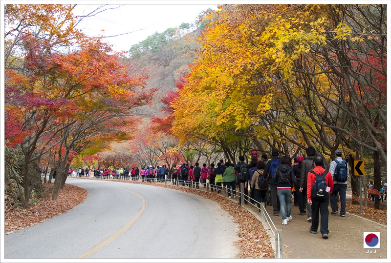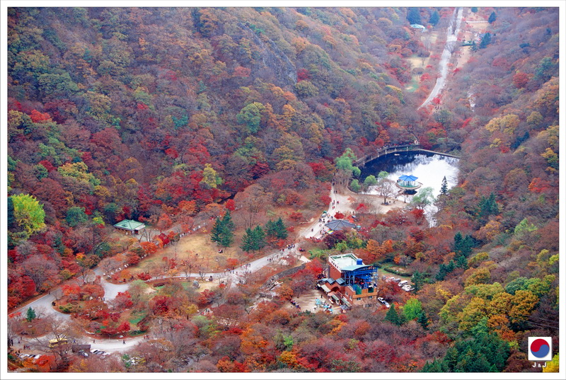 由於昨天時間不夠, 我們今天再入山 (但今天是星期六, 人頭湧湧). 今次, 我們選擇先乘穿梭巴士到纜車站乘纜車, 回程時才再走路. 山上的紅葉己經不多了, 但山下的風景也還可以, 這裡能看到主要的公園範圍, 也可以遠眺山上的另一個寺. 下山之後, 我們沿路一邊拍照, 一邊賞楓, 慢慢走回入口, 不知不覺己經到了下午了.