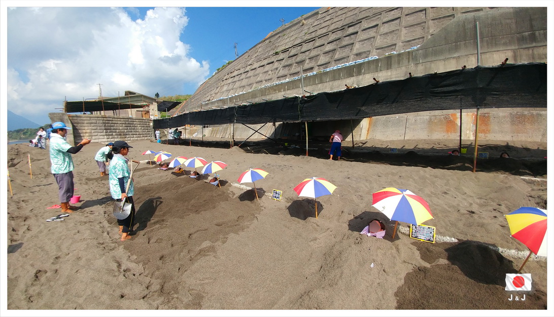 吃過早餐後見時間尚早, 便開車到碼頭看看有沒有機會坐早一班船, 不過開船前半小時己經滿座, 看來要坐原本計劃了的那一班船呢. 趁著這個空檔, 我們再一次去了附近熱砂浴, 跟著早一點回碼頭排隊等十二點的船, 再經過大半個小時的船程, 順利到達對岸的大隅半島.