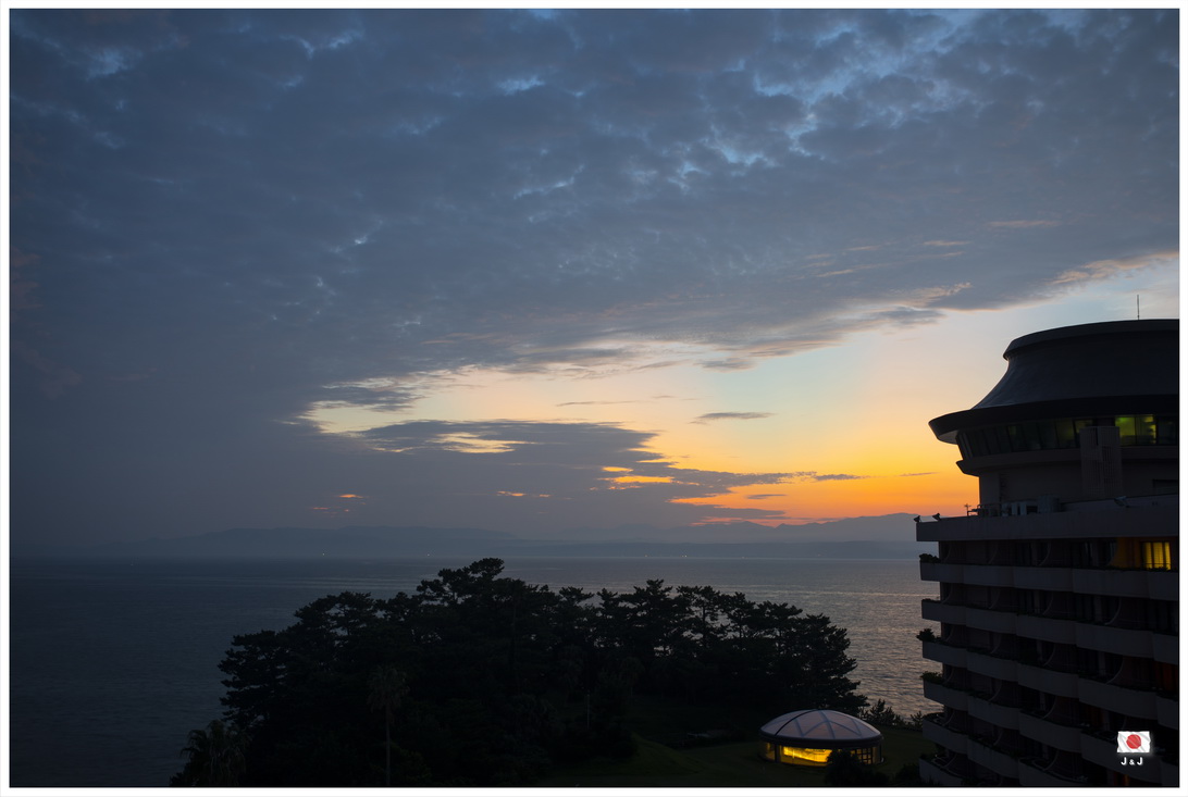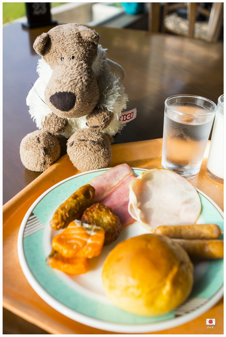 凌晨時份一早起來到露台看日出, 天空有點灰灰的, 不過還是可以看到橙紅色的朝霞, 最美中不足的是咸蛋黃剛好被酒店的一部份阻檔了... @_@...