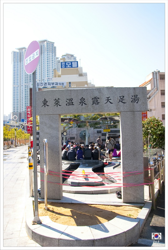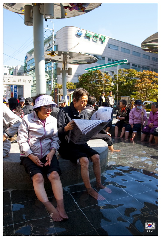 今天要忘記鎮海, 好好地在釜山走一走. 晨早起來, 第一件事便到隔壁的露天足湯浸腳. 我們可是全場最年輕的人啊, 其他的全是公公婆婆啊.