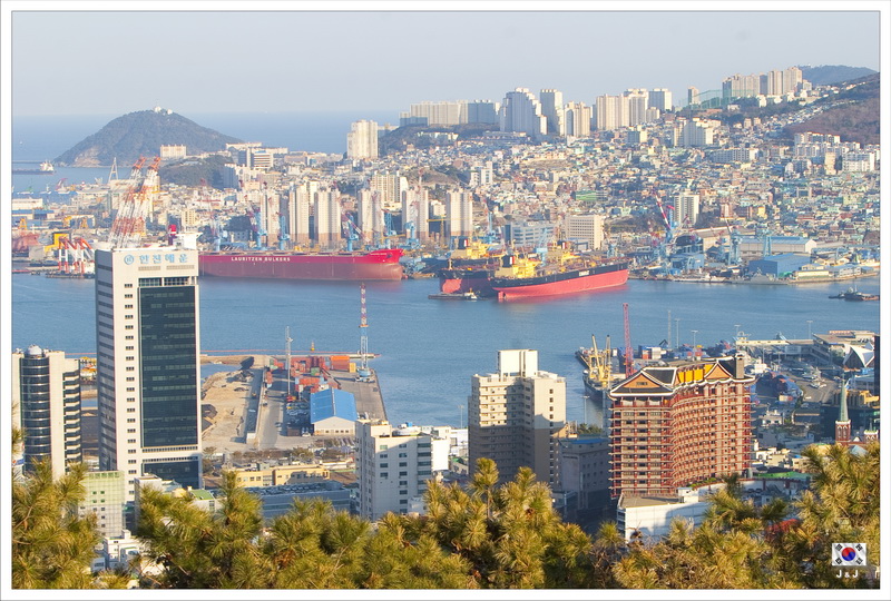 接著我們到了龍頭山公園逛逛, 看看釜山市的風景. 之後我們還逛了附近的國際市場, 正當漫無目的之際看到往中央公園的巴士, 我們便上車去看看. 原本只是打算看一看中央公園怎麼樣, 來到後郤發覺在這裡看釜山港口可不錯呢, 真是一個意外收獲.