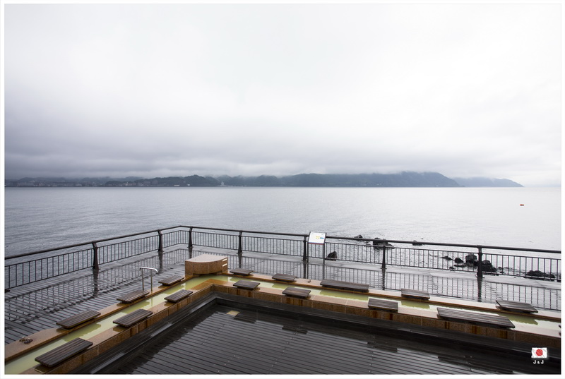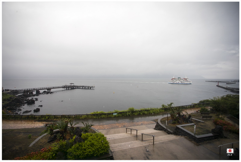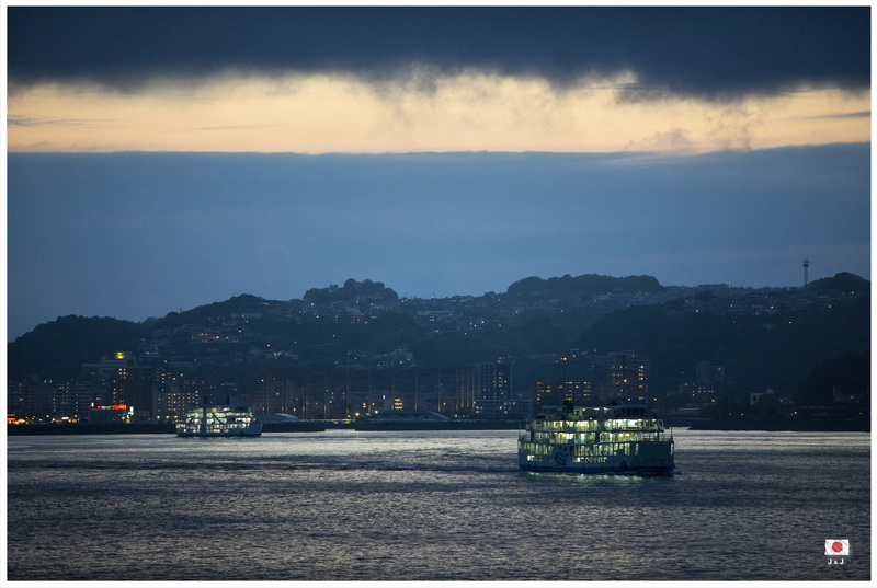 吃飽之後, 我們在大雨中一直開車回鹿児島, 然後再坐渡輪往桜島. 在酒店安頓好之後, 我們到附近逛逛, 浸浸腳便回去吃豐富的晚餐. 黃昏時天氣轉好了一點, 我還可以在房間中看到一個蠻特別的錦江灣夜景呢.