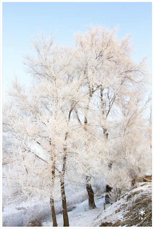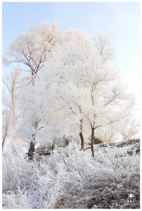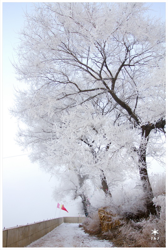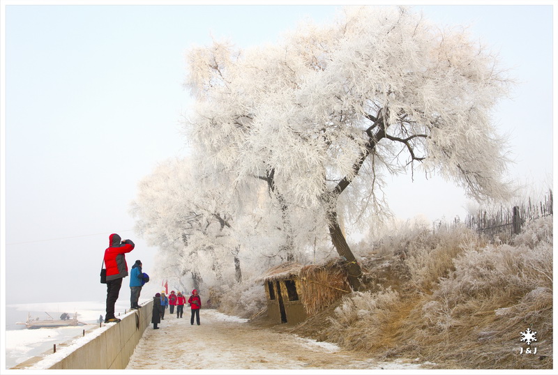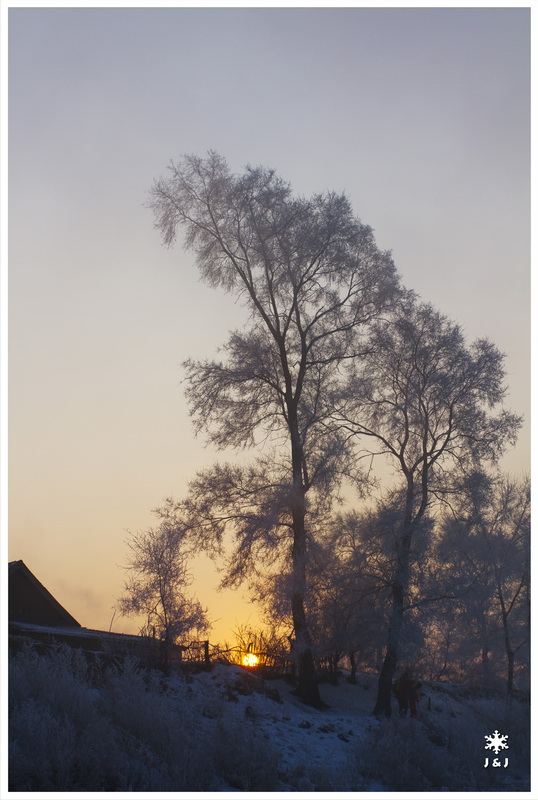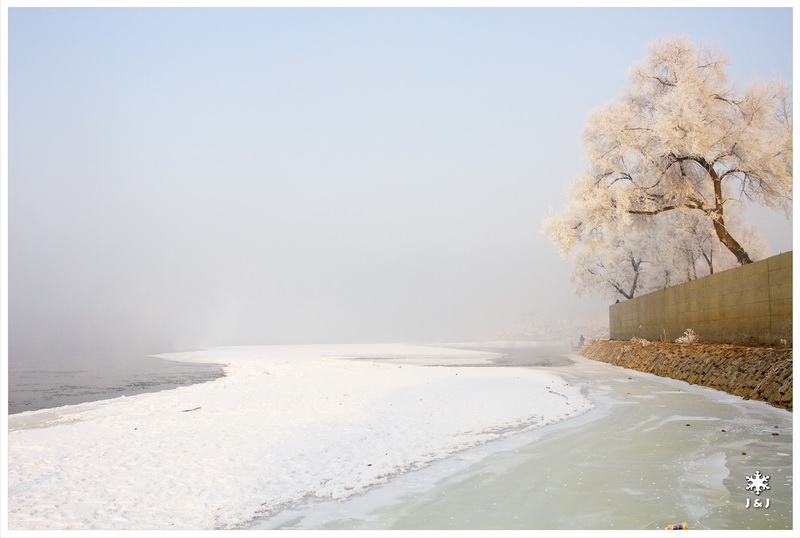 今天我們在韓屯的岸邊看霧淞, 不過, 今天的霧和風都比昨天大, 我們在迷濛之中拍著照, 很快便消磨了幾小時. 看完霧淞之後, 我們在劉大姐家吃預訂了的野菜火鍋, 這麼冷的天氣下吃火鍋特別好吃呢!!