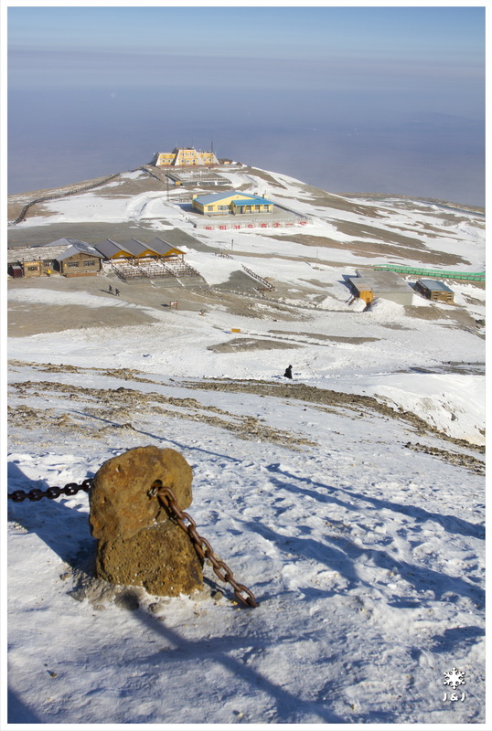 早上八時多我們便到了長白山, 預備上長白山頂看那出名的天池. 我們先從入口坐環保車到山腰, 跟著再坐四驅車往山頂, 沿途四驅車多次在舖滿雪的路上甩尾, 真是既緊張又刺激. 今天天氣也不錯, 下車後沿著小路走上天池, 我們可以濛濛的看到大半個冰封了的天池, 總算還了個心願啊. 不過這裡零下二十幾度, 再加上八號風球般的強風, 真的有點難受.