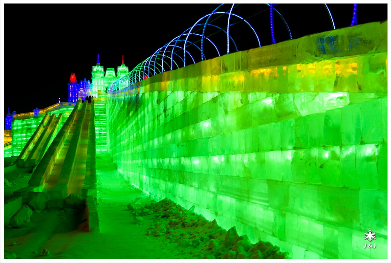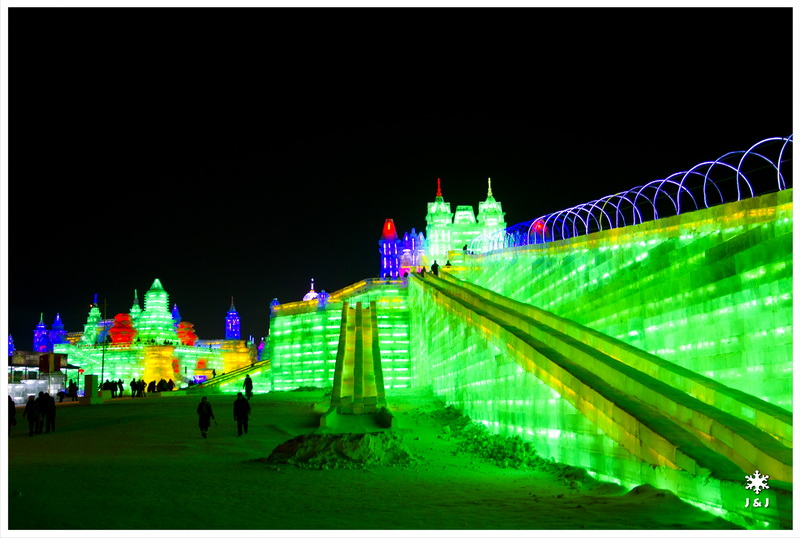 晚上, 我們來到太陽島看冰雪大世界, 裡面場地比想像中小, 有很多由大冰塊砌成的建築, 也蠻有趣. 不過, 這些巨大的冰建築略嫌不夠細緻, 有少少失望. 另外就是這個展覽年年大幅度加價, 己經去到不合理的水平. 所以, 未看過的朋友可以一看, 來過一次的就不會再來了. 看完冰雕, 我們到中央大街找東西吃, 很幸苦地找了一間有位置的餐廳就坐, 不過很多東西停售之餘再加上很差的服務態度, 我們隨便的吃了一些東西便帶著一肚子氣離開.