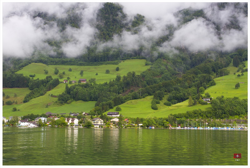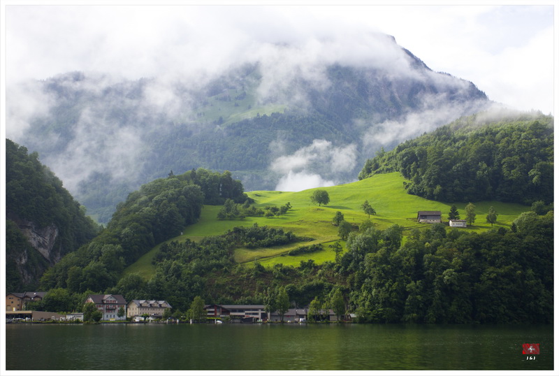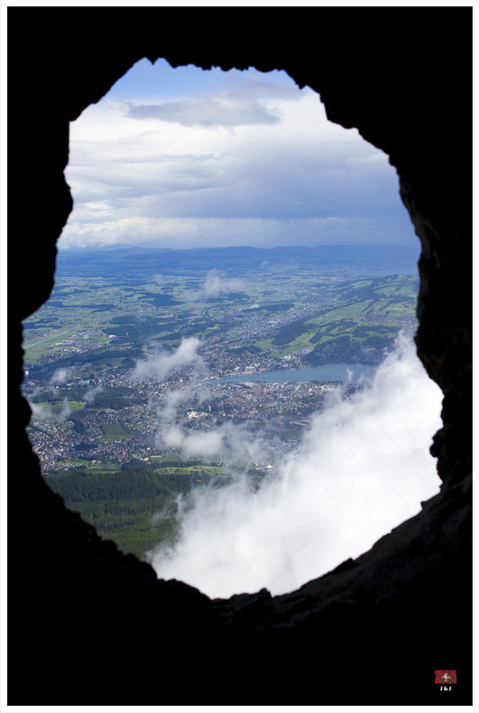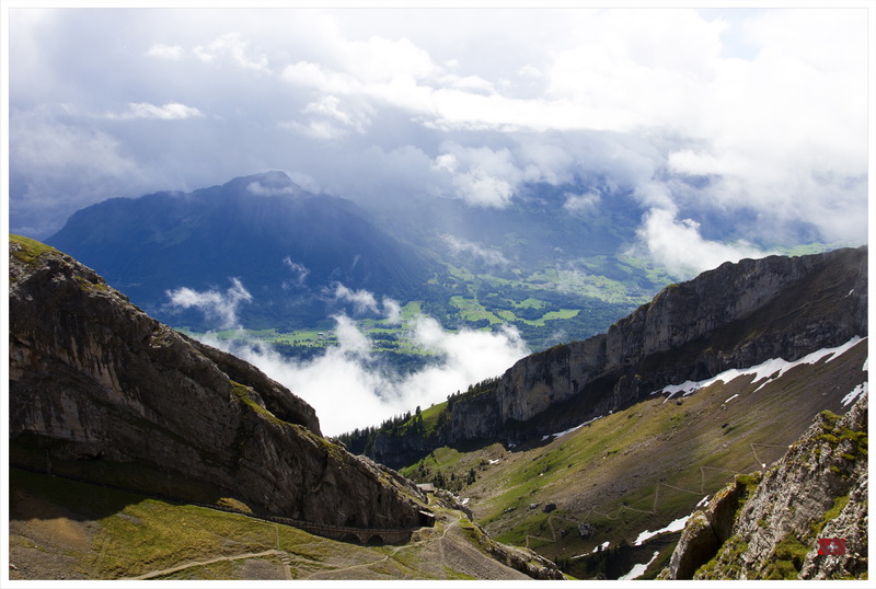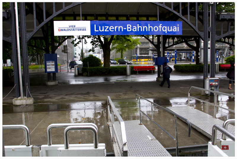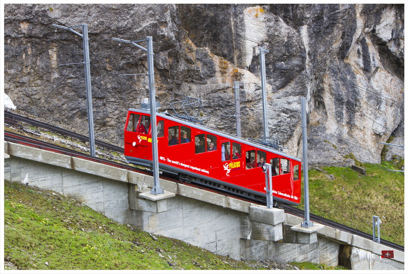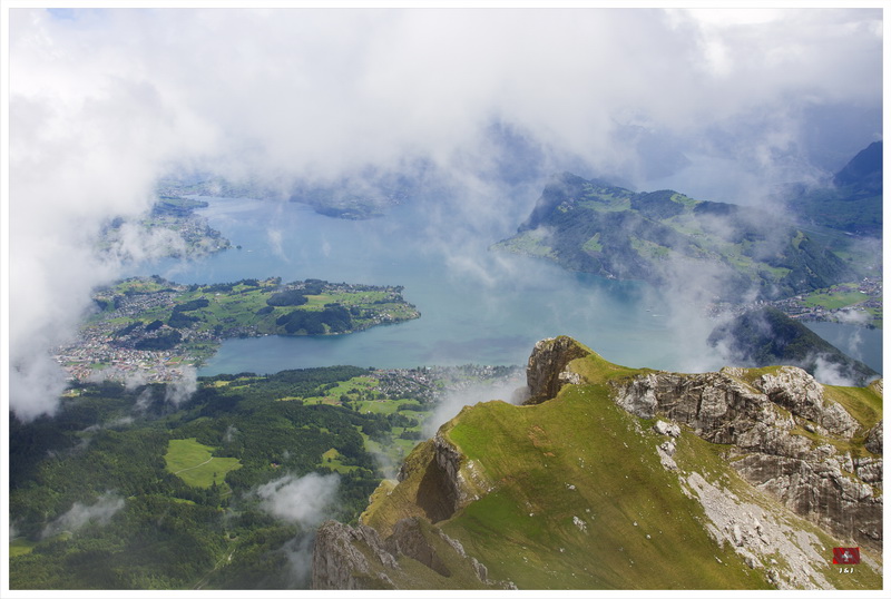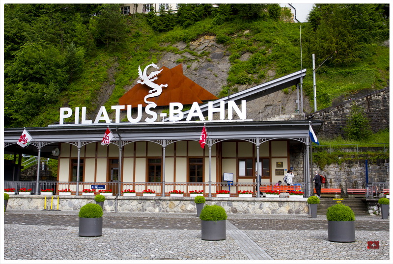 一覺醒來, 天空烏雲密佈還下起毛毛雨, 我們原本打算先坐吊車上Mount Pilatus, 最後決定先坐遊船, 然後坐火車上山, 希望消磨一些時間後天氣會好一點. 我們先坐船到 Alpnachstad, 幸好, 隨著我們的船離開, 天空稍為好轉了一點. 接著, 我們坐世界最斜的齒輪鐵道上山. 山上的天氣很不穩定, 時晴時雨, 我們漫遊了著名的Dragon Path, 再到了附近的兩個暸望台看風景, 幸好天公造美, 我們還是有機會從山上清楚的看到Lucerne市和附近的環境.