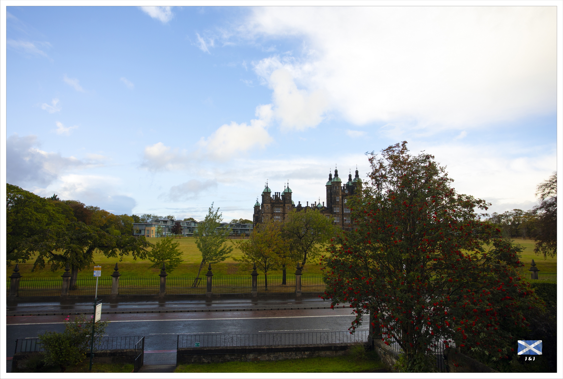 由屋企到 Edinburgh 淨車程大約要八個多小時, 我們八點前出門口, 途中停了多個 Services, 到達時己經是下午五時多. 在 Edinburgh 加滿油, 吃個熱狗後便到酒店 Check-in. 隨後再在酒店附近逛一逛, 和彩虹偶遇之後, 逛了一會兒便回去休息了.