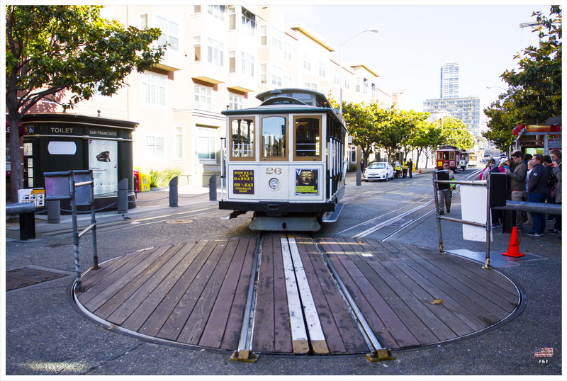 離開碼頭後我們先到附近的超市, 跟著再到Cable Car總站排隊. 很多人都慕名而來, 來坐坐這架歷史悠久的纜車, 看著工作人員沿用古老方法幫車箱轉向, 好像回到很久以前的時空裡呢. 纜車最後帶我們回到Powell Street Station的總站, 之後再到對面的百貨公司逛一逛才回去休息.