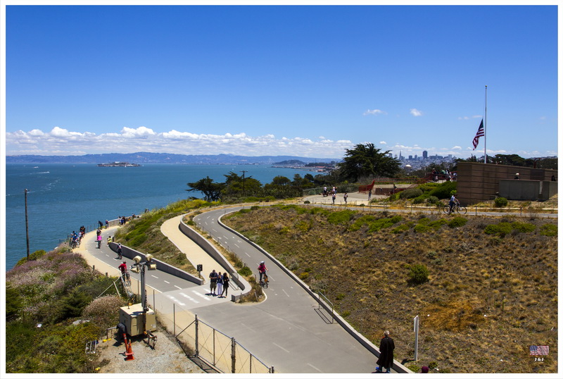 逛了一會後我們坐巴士到Golden Gate Bridge, 天氣也慢慢的轉好, 來到的時候剛好看到美麗天氣下的Golden Gate Bridge, 真的很幸運啊! 在旁邊看著美麗的大橋和海景外, 我們還親身到橋上走一走, 感受一下大橋的氣勢.