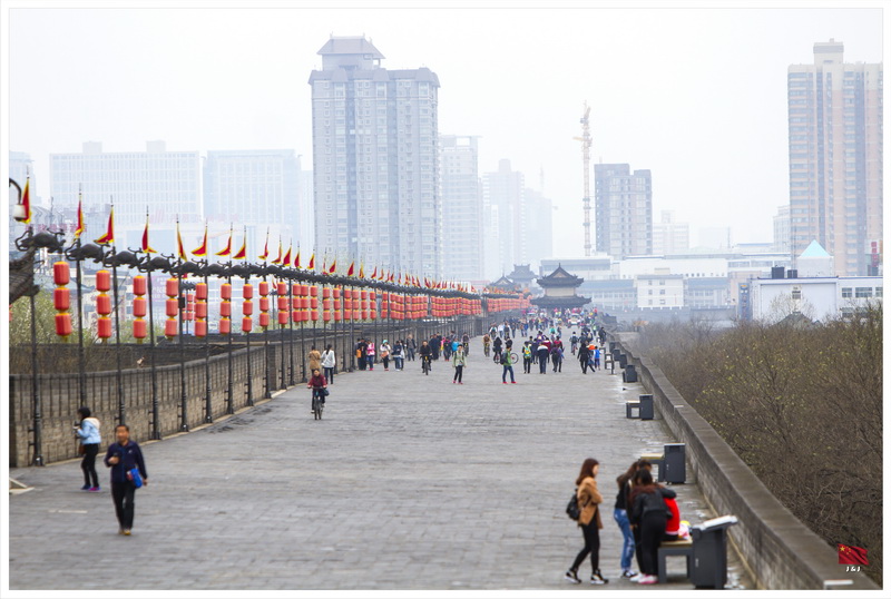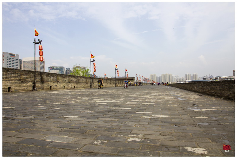 幸運地, 今天沒有再下雨了, 只是持續的天陰 . 所以今天第一個節目便是到城牆上踩單車!! 由於我們近北門(安遠門), 所以由北門的入口上城牆, 而時間尚早, 也不算有很多人, 很快便成功租了單車. 單車租用時間為兩小時, 不過我們邊走邊玩邊拍照, 最後只能夠走一半的城牆, 由北門上南門落. 如果你想圍繞城牆一圈, 一定要抓緊時間呢!!