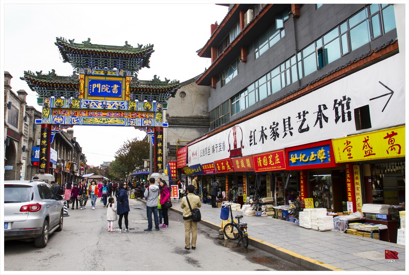 由南門離開城牆後, 剛巧看到旁邊的書院門. 這是一條充滿文化色彩的步行街, 兩旁都有很多賣宣紙, 毛筆, 竹簡, 剪紙等等的東西. 只不過我們對這些認識不多, 隨便看看而已. 最後, 我們意外地在街尾找到一間地道小店, 吃了一個美味的午餐呢.